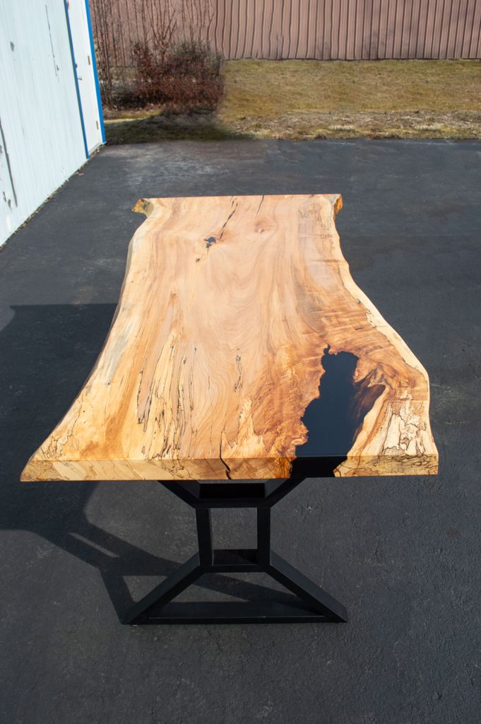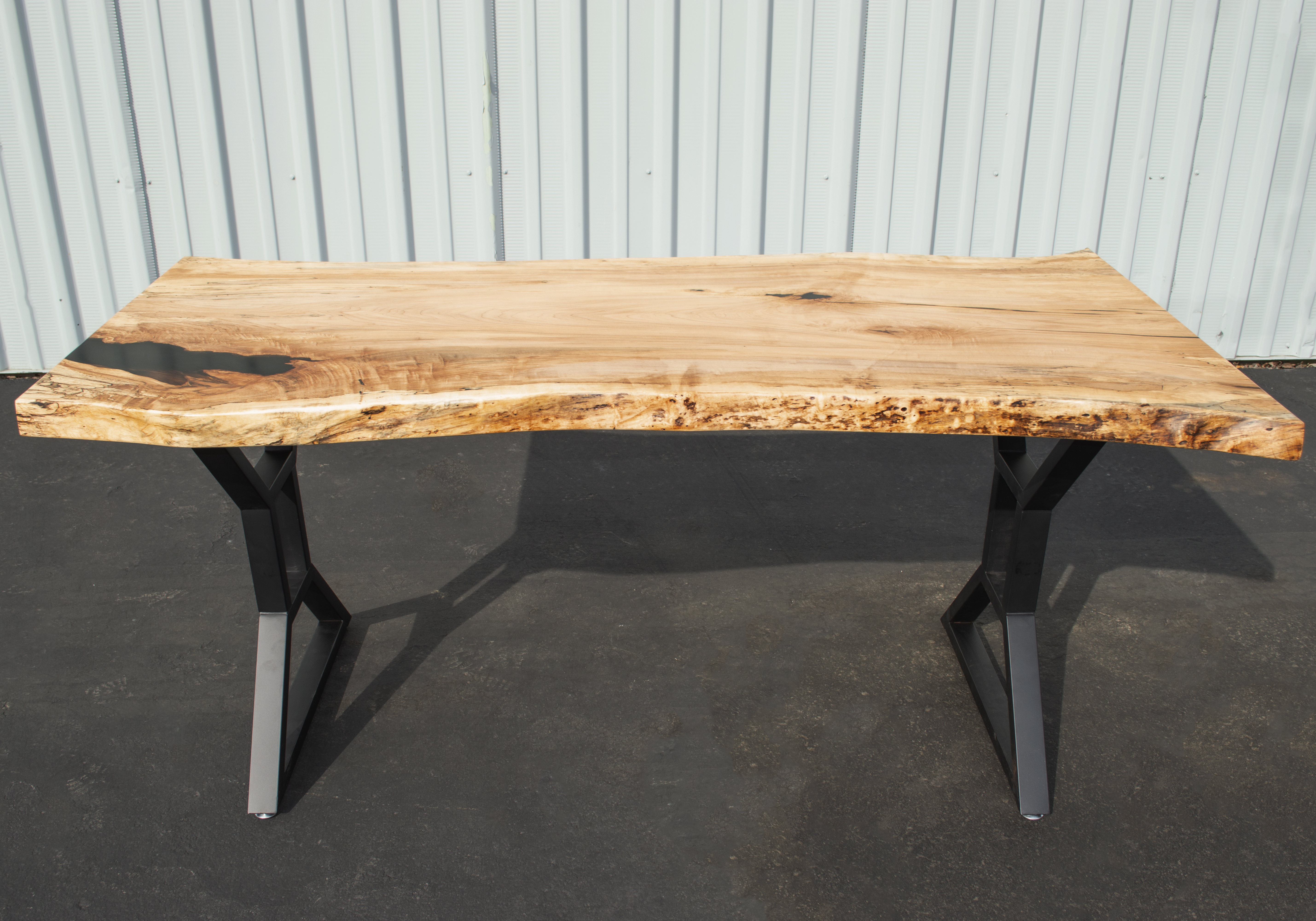 This spalted silver maple piece features striking natural spalting—an early stage of decay that adds character, color, and distinctive lines to the wood—with bold contrast throughout the grain. Its unique patterns and soft, light tones create a one-of-a-kind look that adds visual interest to any space.
